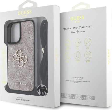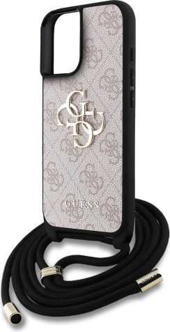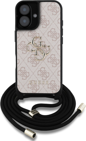 Guess PU 4G Metal Logo Crossbody Strap Case Защитный чехол для iPhone 16 / розовый