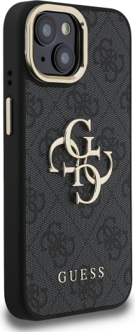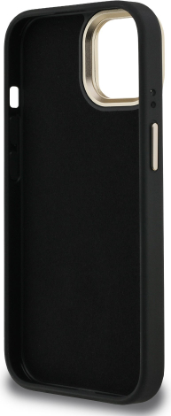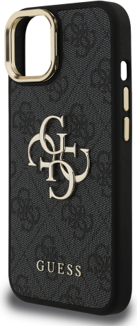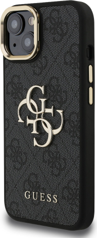 Guess PU 4G Metal Logo Stand Camera Frame Case Защитный чехол для iPhone 15 / чёрный