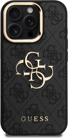 Guess PU 4G Metal Logo Stand Camera Frame Case Защитный чехол для iPhone 15 Pro / чёрный