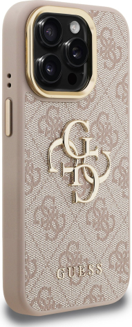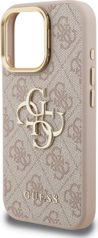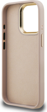 Guess PU 4G Metal Logo Stand Camera Frame Case Защитный чехол для iPhone 15 Pro Max / розовый