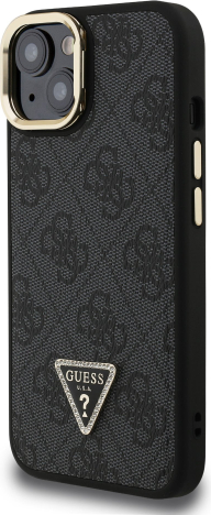 Guess PU 4G Strass Triangle Logo Stand Camera Frame MagSafe Case Защитный чехол для iPhone 13 / чёрный