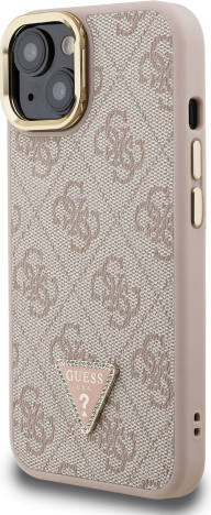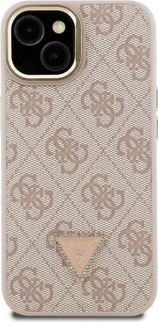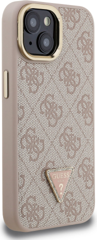 Guess PU 4G Strass Triangle Logo Stand Camera Frame MagSafe Case Защитный чехол для iPhone 13 / розовый