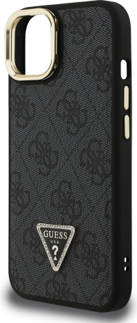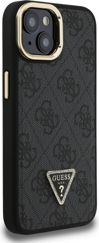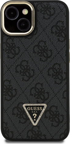Guess PU 4G Strass Triangle Logo Stand Camera Frame MagSafe Case Защитный чехол для iPhone 14 / чёрный