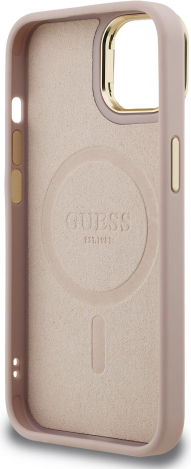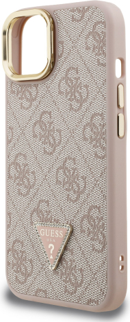 Guess PU 4G Strass Triangle Logo Stand Camera Frame MagSafe Case Защитный чехол для iPhone 14 / розовый