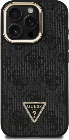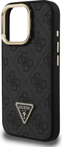 Guess PU 4G Strass Triangle Logo Stand Camera Frame MagSafe Case Защитный чехол для iPhone 15 Pro / чёрный