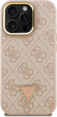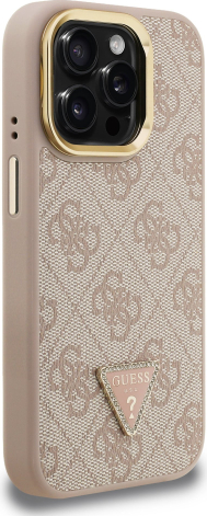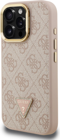 Guess PU 4G Strass Triangle Logo Stand Camera Frame MagSafe Case Защитный чехол для iPhone 15 Pro / розовый