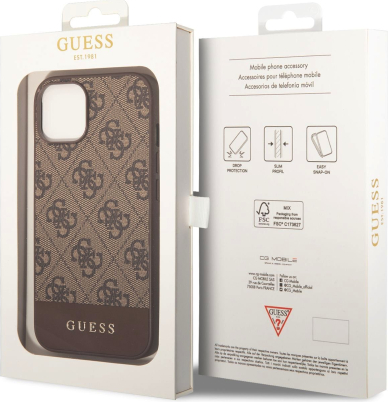 Guess PU 4G Stripe Case Защитный чехол для iPhone 14 / коричневый