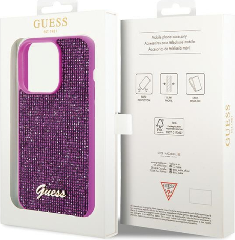 Guess PU Disco Script Metal Case Защитный Чехол для Apple iPhone 15