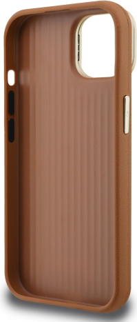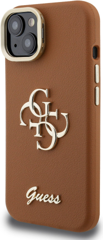 Guess PU Grained 4G Logo Stand Camera Frame Case Защитный чехол для iPhone 15 / коричневый