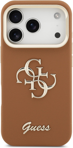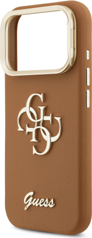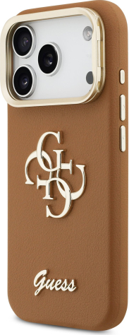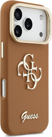 Guess PU Grained 4G Logo Stand Camera Frame Case Защитный чехол для iPhone 17 Pro / коричневый