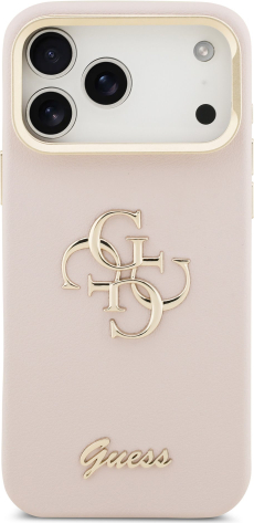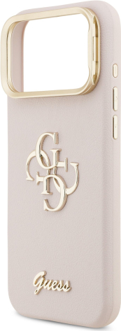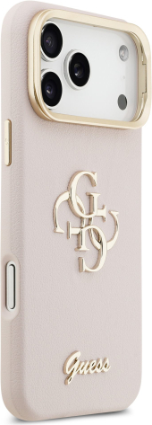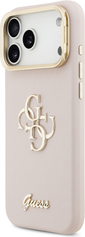 Guess PU Grained 4G Logo Stand Camera Frame Case Защитный чехол для iPhone 17 Pro Max / розовый