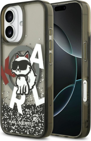 Karl Lagerfeld Apple iPhone 17 Silicone case wiht MagSafe Liquid Glitter Choupette Logo Black