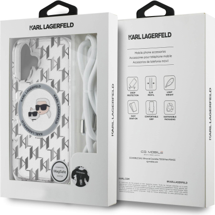Karl Lagerfeld IML Monogram Crossbody K&CH Heads MagSafe Защитный чехол для iPhone 16 / прозрачный