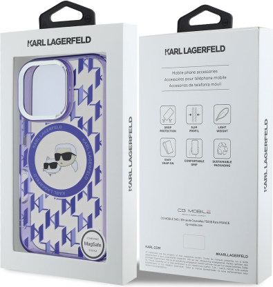 Karl Lagerfeld IML Monogram K&CH Heads MagSafe Case Защитный чехол для iPhone 16 Pro / фиолетовый
