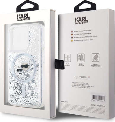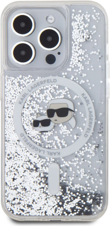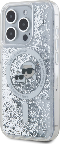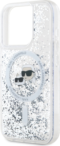 Karl Lagerfeld Liquid Glitter Karl and Choupette Heads MagSafe Case Защитный чехол для iPhone 15 Pro Max / прозрачный