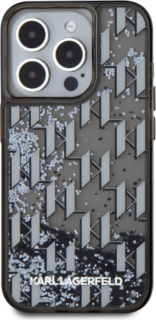 Karl Lagerfeld Liquid Glitter Monogram Gradient Case Защитный чехол для iPhone 15 Pro / чёрный