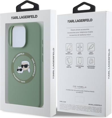 Karl Lagerfeld Liquid Silicone K&CH Heads MagSafe Case Защитный чехол для iPhone 16 Pro / хаки