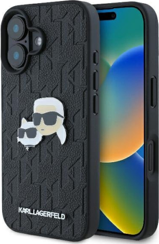 Karl Lagerfeld Monogram Karl&Chaoupette Head Pin Защитный Чехол для Apple iPhone 16 Plus
