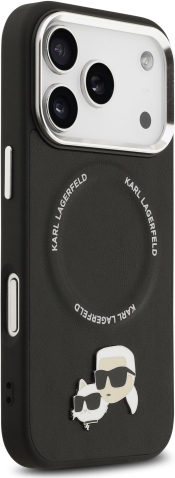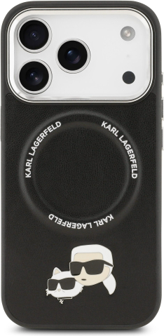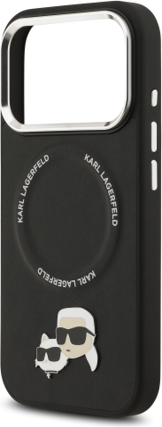 Karl Lagerfeld PU Karl and Choupette Heads Pins MagSafe Case Защитный чехол для iPhone 17 Pro Max / чёрный