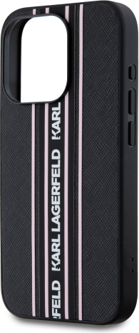 Karl Lagerfeld PU Saffiano Athleisure Stripe and Strap Case Защитный чехол для iPhone 15 Pro / розовый