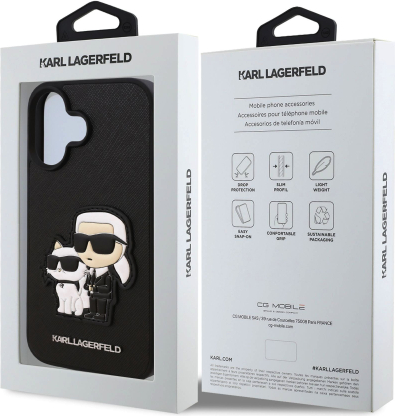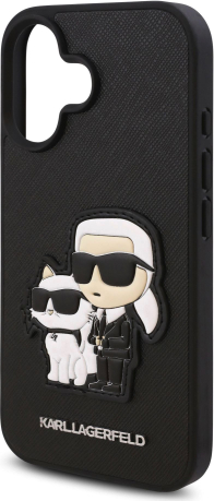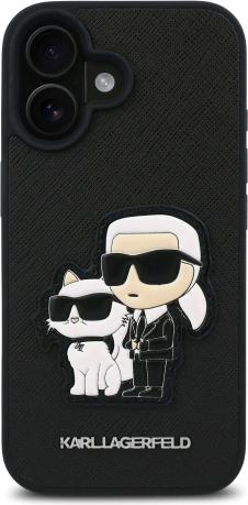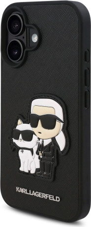 Karl Lagerfeld PU Saffiano Karl and Choupette Защитный чехол для iPhone 16 / чёрный