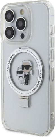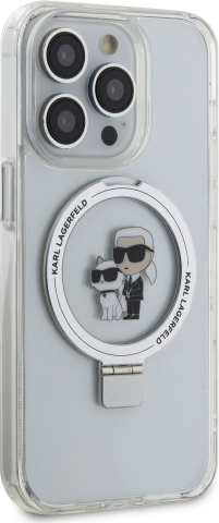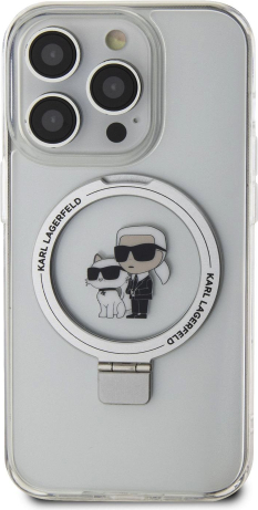 Karl Lagerfeld Ringstand Karl and Choupette MagSafe Case Защитный чехол для iPhone 15 Pro Max / белый