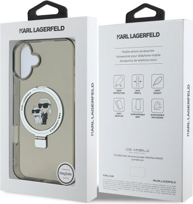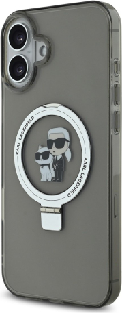 Karl Lagerfeld Ringstand Karl and Choupette MagSafe Защитный чехол для iPhone 16 Plus / чёрный
