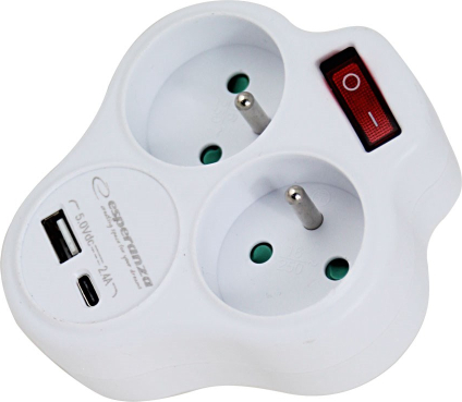 Esperanza ELK311W Electrical splitter 2 GN. USB-C USB-A ON. White