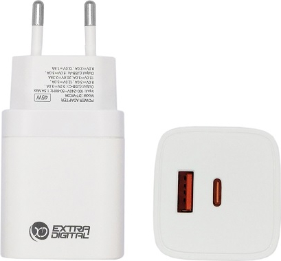 Extradigital Зарядное устройство EXTRA DIGITAL GaN USB Type-C, USB Type-A: 45 Вт, PPS