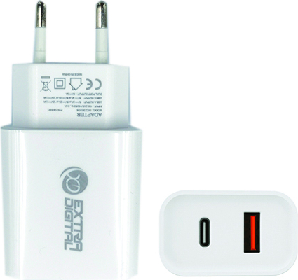 Extradigital Зарядное устройство EXTRA DIGITAL USB 3.0+ Type C: 220V, 20W, QC3.0+ PD