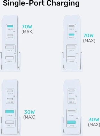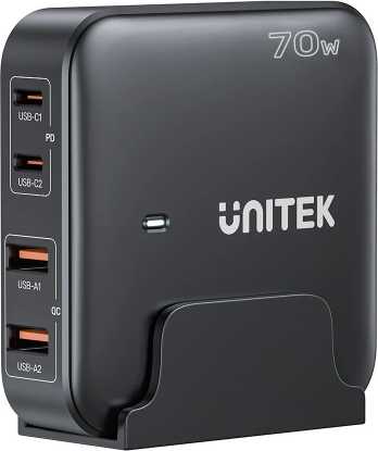 GaN network charger - Unitek P1228ABK01-EU | 70W 2x USB-C 2x USB-A