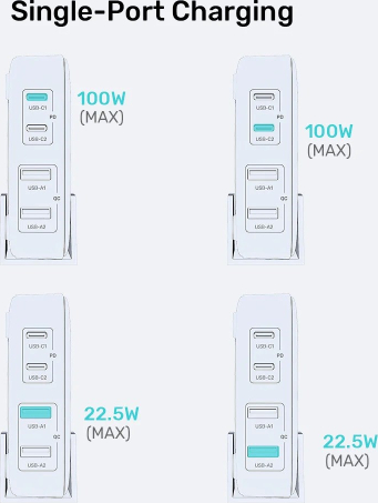GaN network charger - Unitek P1229ABK01-EU | 100W 2x USB-C 2x USB-A