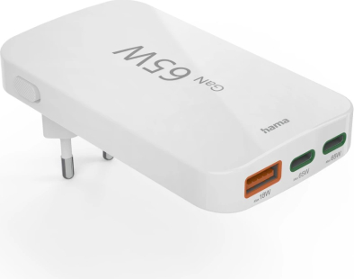 Hama 00201976 Flat Charger 220V With 2xUSB-C/USB-A 65W White