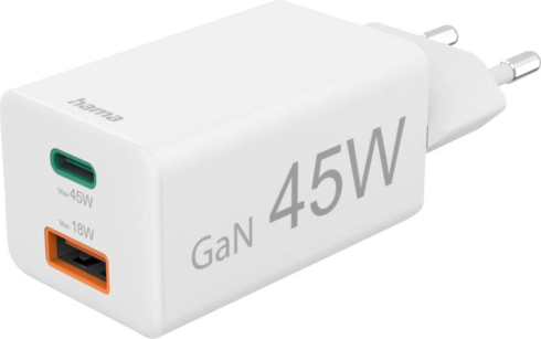 Hama Mini Adapter 45W GaN USB-C + USB-A White