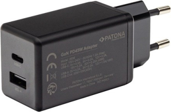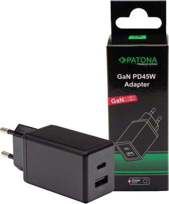 PATONA Premium Charger GaN PD45W 1xUSB-C 1xUSB-A PD3.0 QC3.0 Black