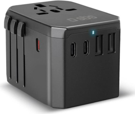 The SBS GaN Universal Travel Charger is the perfect companion for global travelers. Equipped with four different plugs, it can be used worldwide, providing up to 70W of charging power. This charger includes 5 USB ports: 2 USB-A and 3 USB-C, making it ideal for fast charging smartphones, tablets, and even laptops. With Power Delivery technology, it ensures fast and safe charging, while the compact design and included travel pouch make it highly portable.