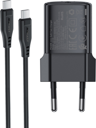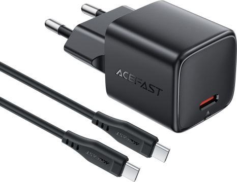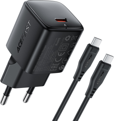 Сетевая зарядка Acefast A118 30W GaN USB-C + USB-C to USB-C cable 1.2m черная