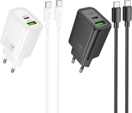 Сетевая зарядка Hoco N63 30W GaN USB-C/USB-A + USB-C to USB-C cable 1.0m черная