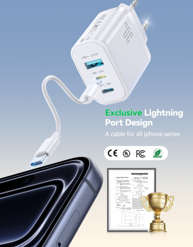 Safety and IntelligenceSafety is prioritized with a 9-layer protection system, covering over-voltage, over-current, short-circuit, and anti-static protection. The integrated intelligent temperature control chip monitors the charging process in real-time to prevent overheating, housed in a durable, flame-retardant PC shell. Technical Specifications