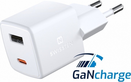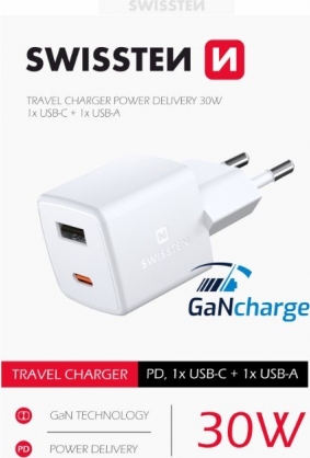 Swissten GaN Mini зарядное устройство USB-C / USB / PD 30W