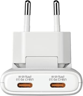 Это компактное и мощное зарядное устройство использует технологию GaN (нитрид галлия), что позволяет уменьшить размеры устройства и повысить его энергоэффективность. Зарядное устройство обеспечивает быструю зарядку ноутбуков, планшетов и смартфонов через два порта USB-C с поддержкой Power Delivery 3.0 и PPS. Складывающаяся вилка делает его удобным для путешествий. Технические характеристики: