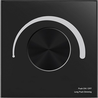 | TS-K(WZ) wall mounted TRIAC controller, single color, Zigbee Rotary panel TRIAC light dimmer 100-240V AC 1x 1.5A, for single-color LED strips, incandescent and halogen lamps, 1 channel, with mechanical knob, supports control of 50 lighting levels. Features: TS-K(WZ) – is a smart ZigBee dimmer with an elegant glass panel and a rotary control knob. It allows smooth dimming or brightening of the lighting, as well as switching the lights on and off. Compatible with dimmable LED strips/bulbs, incandescent lamps, and halogen lamps. Supports single-color lighting systems. The rotary knob allows convenient switching on/off and brightness adjustment in 50 levels. A long press on the knob enables fine brightness control in 256 levels. The controller operates via the ZigBee protocol and is fully compatible with the Tuya Smart app, allowing users to easily manage their lighting with a smartphone. Functions include delayed on/off, timer activation, and lighting scene creation and editing. The preferred dimming mode can be selected – leading edge or trailing edge – using the DIP switch. The minimum brightness level can be set with a button press, while the light on/off transition time can be configured up to 3 seconds. Equipped with TRIAC control function. The controller also works with popular voice assistants – Amazon Alexa, Google Assistant, as well as Tmall Genie and Xiaodu. It is also compatible with the Philips HUE system (when connected to the Philips HUE bridge, it can be controlled via the Philips HUE app). Luxurious design with a glass panel and a silver-colored knob. Mounted on the wall like a standard switch. The dimmer is universal and can work with various LED controllers. Protection against overload and overheating. Specifications: Product model: TS-K(WZ). Number of channels: 1. Controlled lighting systems: single color. RF distance: 15m (barrier-free space). Input voltage: 100-240V AC. Output voltage: 100-240V AC. Output current: 1.5A. Power: 150-360W. Dimming range: 0-100%. Buttons: 1 (rotate and press) knob. APP: Tuya Smart / Smart Life, Philips HUE (Android, iOS). Works with Amazon Alexa & Google Assistant. Safety class: IP20 (not waterproof). Certificates: CE, RoHS. Operating temperature: -30~+55°C. Dimensions: 86 x 86 x 48 mm. Color: black. Weight: 234g. Warranty: 24 months. ![]() |