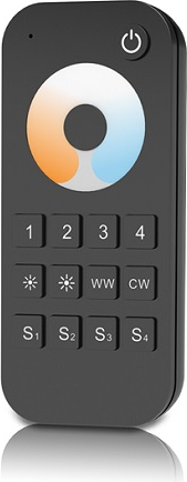 | RF remote control for LED strip dual color (WW/CW) temperature, 2.4GHz, 4 zones, with touch wheel, supports 4 scenes, 10 light-modes control. Features: Supports lighting systems: dual color (CCT). Can control one lighting zone in 4 different scenes. Allows you to smoothly dim or brighten the lighting in 10 levels. Compatible with dimmable LED strips/bulbs. The sensitive touch wheel allows you to adjust the color temperature of the lights. Automatically switches to "sleep" mode. Activated by pressing any button. In standby mode, batteries last up to 2 years. The operating frequency of the RF remote control is 2.4GHz, which ensures a stable signal at a distance of up to 30m, it is less disturbed by obstacles such as walls, partitions, etc. Hand-held, compact, pocket-sized design. RT2 remote control is universal, it can work with various LED controllers or with wireless wall switches. Complete with a convenient wall bracket. Technical data: Product model: RT7. Number of zones: 4. Controlled lighting systems: CCT. Operating frequency: RF 2.4GHz. Operating current: <5mA. Standby current: <10uA. Operating distance: up to 30m. Power supply: 3V DC 2x AAA batteries (included). LED indicator: 1. Buttons: 1 touch ring and 13 buttons. Safety class: IP20 (not waterproof). Holder installation: external (with 2 screws/sticker). Certificates: CE, EMC, LVD, RED, RoHS. Operating temperature: -30~+55°C. Remote dimensions: 122 x 53 x 17.5 mm. Holder dimensions: 53 x 58 x 22 mm. Color black. Weight: 60g. Complete set: RT7, holder, 2x batteries, 2x holder fixing screws, adhesive tape, user manual. Warranty: 24 months. |