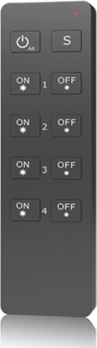 | RF remote control for LED strip single color dimming, 2.4GHz, 4 zones, with magnetic holder. Features: Supports lighting systems: single color. Enables smooth dimming and brightening of the lights. Compatible with dimmable LED strips and bulbs. Suitable for 4-zone lighting control. Allows switching all zones on or off simultaneously. Each zone’s brightness can be adjusted individually with a long press. With a short press, the lights in each zone can be turned on or off. Automatically switches to "sleep" mode. Activated by pressing any button. In standby mode, batteries last up to 2 years. The operating frequency of the RF remote control is 2.4GHz, which ensures a stable signal at a distance of up to 30m, it is less disturbed by obstacles such as walls, partitions, etc. Thin, compact design. RU4 remote control is universal, it can work with various LED controllers or with wireless wall switches. Complete with a convenient magnetic wall holder. Technical data: Product model: RU4. Number of zones: 4. Controlled lighting systems: single color. Operating frequency: RF 2.4GHz. Operating current: <5mA. Standby current: <2uA. Operating distance: up to 30m. Power supply: 3V DC 1x CR2032 battery(included). LED indicator: 1. Buttons: 10 buttons. Safety class: IP20 (not waterproof). Holder installation: external (with 2 screws, magnet). Certificates: CE, EMC, LVD, RED, RoHS. Operating temperature: -30~+55°C. Remote dimensions: 135 x 40 x 11 mm. Color: black. Weight: 41g. Warranty: 24 months.   |