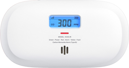 Carbon monoxide detector with LCD display showing CO concentration at 300 PPM