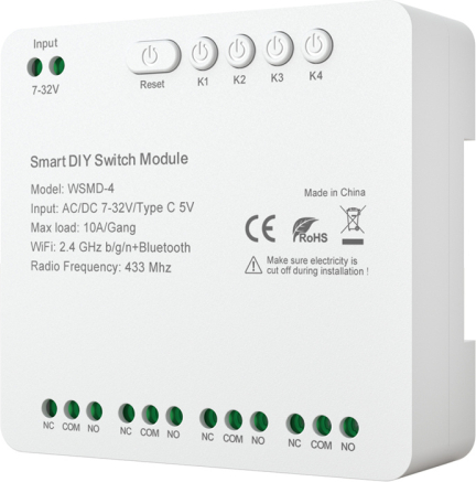 Avatto WSMD-4 32V smart DIY switch moduleAvatto WSMD-4 32V is a smart, four-channel DIY switch module that allows you to remotely control multiple devices simultaneously. With support for 2.4GHz Wi-Fi and Bluetooth, you can control lights, gates, pumps, blinds and more without the need for separate controllers. It's ideal for automation hobbyists and professional installers who want to expand their system with a versatile yet easy-to-configure device.