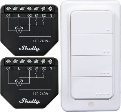 Set of 2 Blind/curtain WiFi controllers Shelly Shutter + BLU RC Button 4