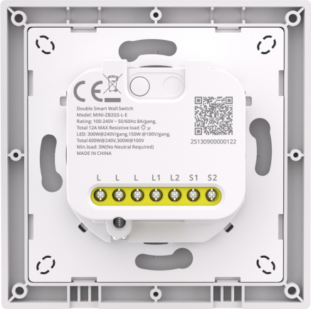 SONOFF MINI-ZB2GSL-E ZigBee two-channel wall switch (without neutral wire)SONOFF MINI-ZB2GSL-E is a state-of-the-art ZigBee 3.0 two-channel wall switch designed specifically for installations without a neutral wire (No Neutral). It allows independent control of two lighting circuits, offers support for scenes, schedules and voice control, while maintaining a minimalist, aesthetically pleasing flush-mount design. It is an ideal solution for upgrading older electrical installations without the need for additional wiring.
