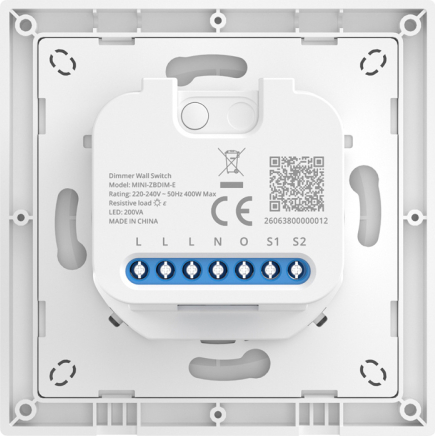 SONOFF MINI-ZBDIM-E ZigBee smart wall switch/dimmerSONOFF MINI-ZBDIM-E is a smart switch operating in the ZigBee 3.0 standard, designed for smooth lighting control in the range of 0–100%. It allows you to create scenes, schedules, and monitor energy consumption. Thanks to the ZigBee router function, it not only controls the light, but also amplifies the signal throughout the smart home network, improving its stability.