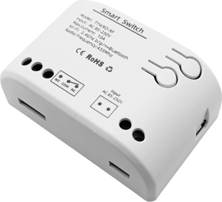 | TUYA WiFi+RF Smart self-locking Relay, WiFi+RF, 10A, AC 85-250V Smart switch-relay for electrical appliances, supporting remote control via Wi-Fi with Tuya Smart or Smart Life apps and RF remote control. Does not have an electricity consumption accounting function. Features: Different control methods: remotely via phone app, remote control, voice, manually or according to a set timer or scenario. No matter which method you use, the status of the devices is synchronized. Remote control: Tuya and Smart Life send data to the cloud platform via a WiFi router, they are paired with home WiFi via the app, so you can control all devices connected via the switch on your smartphone or tablet. Built-in BT module for fast connection. Voice control: The switch is compatible with Amazon Alexa and Google Assistant systems, with which you can turn on / off lights or other devices in your home even when your hands are busy. Supports the creation of various scenarios: you can program devices or their groups to turn on / off at a certain temperature, lighting or other environmental conditions, by connecting a sensor. Also taking into account the time or device states. Device grouping: control multiple devices with one touch or voice command. Timer setting: set the desired device operation schedule, countdown or recurring timer. 8 schedules are supported. With the mobile application, monitor the activity of your devices in real time and receive notifications about events to ensure maximum security. Energy saving: With the Tuya application, adjusting lighting and other devices according to environmental and weather conditions or by setting a schedule, allows you to reduce energy consumption, saving you time. Sharing: simple and easy provision of device access to family members, clients. Convenient power supply via USB port is supported. Easy programming and connection. Possible applications: home lighting control, electrical appliances such as electric kettle, curtains, fan, etc. Specifications: Voltage: AC 85V-250V / USB 5V. USB interface: micro USB. Maximum current: 10A. Power: 2200W. Frequency: 50/60Hz. RF frequency: 433MHz. Operating temperature: -20°C~70°C. Operating humidity: 5%-90%RH. Wi-Fi frequency: 2.4 GHz. Wi-Fi standards: 802.11b/g/n. Number of channels: 1. APP: Tuya Smart / Smart Life (Android, iOS). Works with Amazon Alexa & Google Assistant, Google Home / Google Nest. Size: 69mmx41mmx20mm. Color: white. Certificates: CE/RoHS. Warranty: 24 months. ![]() |